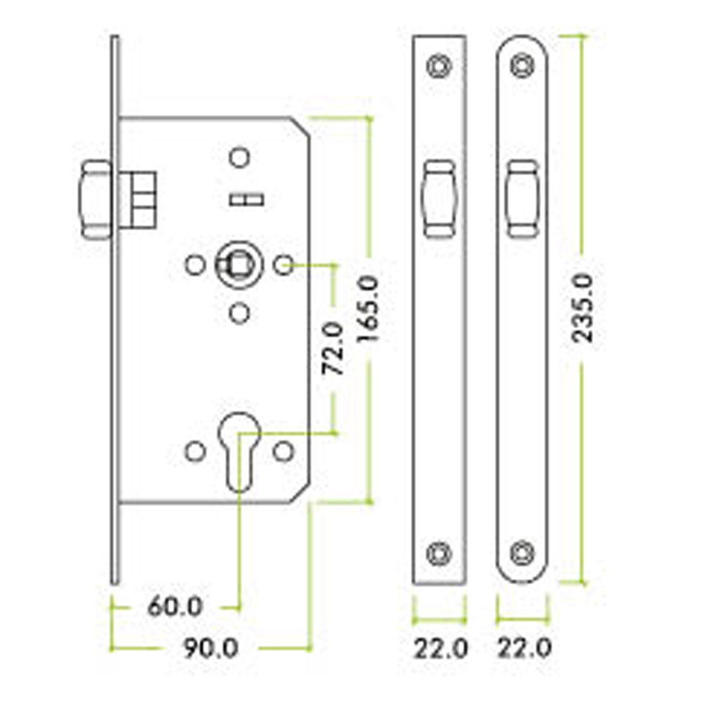 - Square profile - 22mm Grade 304 stainless steel forend