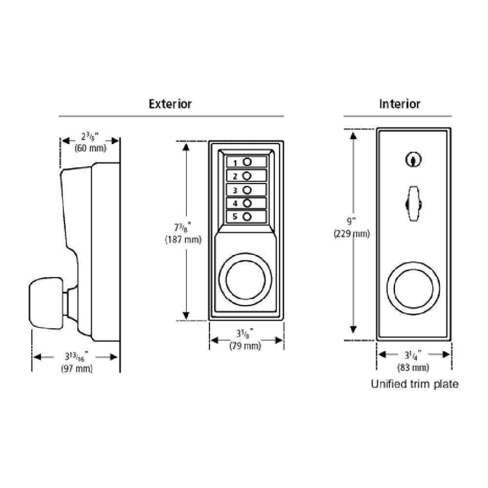 The Simplex 1000 Series provides exterior access by combination, while allowing free egress. This mechanical lock, with knob option, eliminates the material and labour expense of battery replacements, has a single access-code and is programmed via the keypad without removing the lock from the door. This heavy-duty commercial quality product is extremely popular and often seen used in healthcare, educational and business facilities. Outside: Entry via code Inside: Exit via knob Case height: 187mm Case width: 79mm Backset: 70mm Override Core is supplied separately for key override versions. see here Combinations: 1000+ possible code options Code length: 1-5 digits Suitable for doors 35-57mm thick