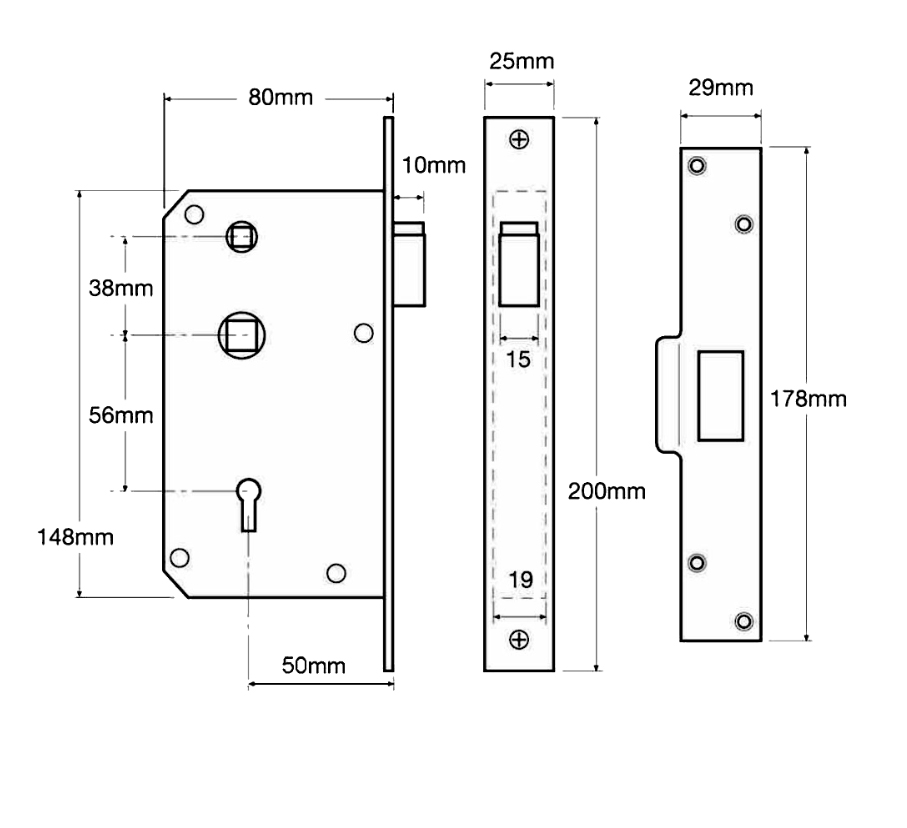 - Can be modified for use as a fire escape lock by removing the facility to lock the handle (see 3R35X)