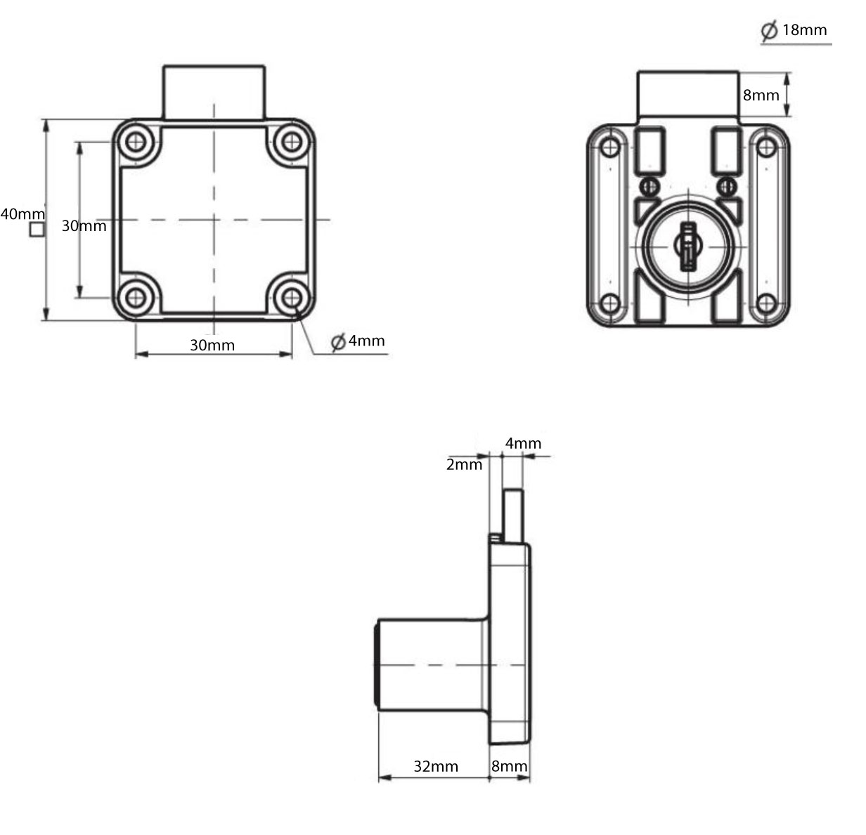 BMB Drawer Lock Square, Long 32mm nozzle length